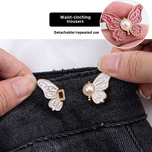 In Stock Adjustable Jeans Waist Cincher with Detachable Pearl Pattern Butterfly Buckle No-Sew Rectangle Waist Size Adjustment