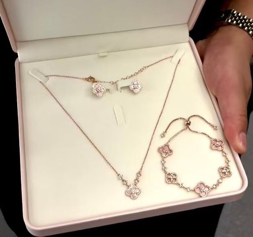 18K Real Gold Plated Zircon and Mother-of-Pearl Flower Pendant Necklace - Bracelet - Earrings Set 1 sales