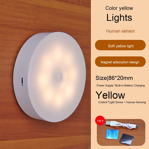 2Pcs Yellow Light And 2Pcs White Light Sensor Intelligent Human Body Sensor LED Night Light