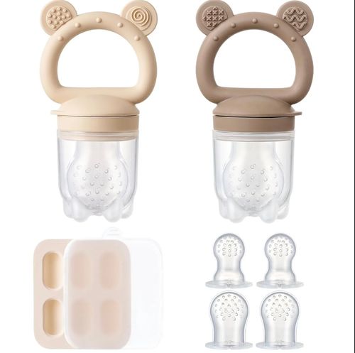 2 Pack Silicone Baby Fruit Feeder with Mini Freezer Tray, Breastmilk Popsicle Molds for Baby Teething Relief, Teethers, Fresh Food Feeder for Safe Infant Self Feeding