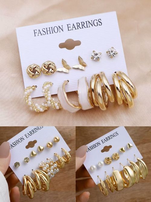 Fashion New Pearl Heart Circle Gold Plated Butterfly Hoop Stud Earrings Set for Women Jewelry Wholesale